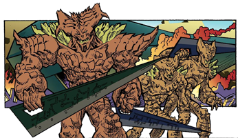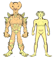 | Classic Modern A.K.A.: Nahthas, Rigelians Type: Extra-terrestrial Place of origin: Their original home world is unknown, but as of today, they have colonized most planets of the Rigel system. Classic Gatari are the old style Gatari, prior to Koralia taking the throne circa 2025 A.D. Classic Gatari do not wear clothes. Modern Gatari are the reformed version. A few do wear clothes, while all Nahthas do. Aboard Nicci's ship, they all wear a uniform. Although they called themselves Gatari, the species is actually called Nahtha. Gatari are the warrior caste of nahtha society but have deemed that nahthas are not worthy of being acknowledged and so, have renamed their race. They have enslaved the lower caste nahthas and use them as slaves and also as food. These Gatari are also cannibalistic, as they feed on other Gatari and Nahthas, as well as, eat their dead. Although these Gatari feed on the weak, they have no qualms about consuming the strong that fall ill or in battle. Nahthas are what Gatari should really look like if they followed a more natural diet. They are smaller, and their crest is natural (soft and floppy) and hangs down almost like a head of hair. Their crest is often spotted. They, too, have a hidden mouth in their throat. Females do not have breast because nahthas are not a mammalian species. Like males, they have pectoral plates. The Gatari empire is ruled by the Gatari Nak'To (Great male warrior), although the newest ruler, Koralia, is a female. She has decided to keep the traditional title, rather than take the more correct Gatari Tan'To (Great female warrior). Under Koralia's rule, there have been major changes in Gatari society. Nahthas are now in charge, while Gatari maintain the peace as a military and police force. This change in leadership has helped the Empire become a valuable and respected trading partner. Abilities: Gatari are stronger than humans, more numerous and relentless. Their technology is borrowed from conquered races and is superior but less varied. They travel in swarms aboard diamond shaped mother ships. When fighting, they do not use long-range weapons, as they find them cowardly. The Gatari have been seen flying through space, but all indications point to them wearing some apparatus incorporated into their armour. They can withstand the vacuum of space by spreading an organic substance called jakka over their body. The substance covers them like a second skin. Their morphology The Gatari are not born with an exoskeleton. Their flesh is soft and pliable and slightly hardens as they age, however, as a result of their cannibalistic diet; their exoskeleton’s density increases. This happens because the Gatari flesh is rich in calcium, and the ingested deposits accumulate in the dermis. Modern Gatari still feed on their dead, as it is an integral part of their culture, and this helps them form their armored shell, but for the most part, their diet primarily consist of shelled prey, molusks and crabs. They have also been seen feeding on limestone and even marble. Most females do not have exoskeletons because their diet consists primarily of mamms (Mammals). The warriors consider mamms a female food because of its softness. Only a handful of females ever manage to make it as warriors. The Gatari can reach a maximum of 50 years of age, but almost none do. Those who reach 30 to 35 years are considered old. The majority never reach 30. The Gatari raised as cattle live about three years. (This practice, however, has been abolished by Koralia, their new ruler.) Gatari dung is called pah'. It is also a main ingredient in their building material, as it too contains much calcium. Pah' is also a derogatory term, and unworthy Gatari are often called Nak Pah’ (male dung) or Tan Pah’ (female dung). Gatari in training are also referred to as Gatari Pah' or dung warriors/shitty warriors. Facial features The Gatari have two eyes, nostrils that open and close, and have two mouths. One located on the face like humans and the main one located in the throat. The first is used primarily for drinking and nibbling. The other is used to wolf down large pieces and break bones. When not in use, the throat mouth is hidden. They can shape their “shells” to grow as they wish by sculpting them. Their shells are very strong. They can also affect the pigmentation of their body. Types of Gatari ![]() Most Gatari are bipedal. Those born with four or six legs usually rise up in rank faster because they are naturally stronger. The Gatari can reach heights of 6 to 12 feet tall (excluding their head crest). The Gatari Nak’To (their supreme ruler) usually have six legs, but the one who ruled at the onset of the Gatari/Human war (year 2016 AD) had four. Koralia, the current ruler (year 2392 AD), is bipedal. Sexuality The Gatari sexual organs are located on what humans would call their stomach. They consist of three superimposed flaps of flesh. Under these flaps, the female carries approximately 30 eggs. When the female is ready to mate, the flaps swell and expose the eggs. The male’s flaps respond in turn, and the male locks his flaps with the female’s. The female flaps open from the bottom, while the male’s from the top. In this fashion, they can lock flaps. After a successful mating, the female’s flaps will turn red. The eggs are then incubated for three months, upon which they are expelled. The Gatari are a sexual race, where procreation and pleasure are two distinctive things. Procreation does not produce much pleasure and is only regarded as a necessity. Females are fertile 3 times a year and each can produce around 100 offspring yearly. In ancient times, the eggs were released in the oceans and most did not survive, thus keeping the population manageable. In the recent past, the eggs were laid in large vats and all came to survive. With this over-abundance of nahthas available, the Gatari kept the majority as food. They argued that had they been spawned in the oceans, m