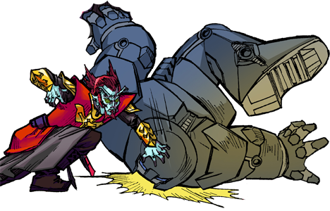 ![]() Created by: Lawrenz Lano Other Pictures: By Suluh Radityo ![]() © 2013 Gaia Force by Lawrenz Lano | Real Name: Morik dar Varel Hair: Red Eyes: Yellow Height: 6 foot 2 inches Age: 112 Born on: Undisclosed Race/Species: Tikkash Base of operations: E'lah Dominion Occupation: Head of the Bounty Hunters' Syndicate. Senior partner of Gamblers' Guild. Classification: Enhanced Being Ethical alliance: Evil History Some 80 years ago, Morik, also known as Ravager, held the title of Champion in Betna'Tu City's most renown arena. His fighting skills were the best in the quadrant, but all this changed when he faced his first Human. At first glance, the Human before him seemed no more than a new challenger he would eventually defeat. He had fought many humanoids and even if their skills and strengths varied, Morik had always managed to overcome them one way or another. Many of his opponents had been taller, larger and stronger than he was, and even if some even had special abilities, the rules of the arena forbade them from using them. Only natural physical skills could be used in the fights, unfortunately for Morik, the Human before him was more than met the eye. In reality, the Human was a former member of Gaia Force, a team of enhanced Humans. They had been given great powers by the entity known as the Guardian. The Human before him was actually the guardian known as Farpoint but in the arena, he would be known as, the Pulveriser. As with all previous fights, the contestants were scanned by Irrilians to determine whether they had special abilities. If they did, they were monitored during the fight and forbidden to use them. Doing so would disqualify them and for that reason, Morik was not worried. What he had not expected, however, was the actual strength and skill of his opponent. The fight was over from the moment it started. The Pulveriser's first hit combo almost killed Morik. His bones were crushed, his ribs shattered and his skull cracked. No one had ever seen such strength before, and when the Pulveriser became the new Champion, it became evident that regular humanoids would have little chance in defeating him. From that day on, the arena allowed registration to beings other than simple humanoids. All types of beings were allowed to participate, so long as strength and skills were used in battle. From armored shelled gatari to giants to multiple limbed beings, all who could offer a good fight did fight. But while the Pulveriser continued to celebrate his victories, Morik was slowly dying. Then, his life changed forever when the Irrilians came to his aid. Unknown to all, Irrilians had a special ability that they began exploiting with the arrival of their new Champion. They were energy siphonners, and they had begun to siphon the guardian energy within Farpoint. The amount of energy they could siphon, however, was minuscule, but small or not, they quickly understood the power it possessed. Unfortunately for the Irrilians, they could not use it for themselves and so decided to experiment with it, starting with Morik. The Irrilians decided to infuse some of that Guardian energy into Morik to test their theory. It worked as planned. Morik's body was healed, and his body started to go through a variety of changes. The Irrilians continued to infuse him with more energy until Morik's body was saturated and refused to accept any more. The Irrilians had almost depleted their entire stock of Guardian energy, but with Farpoint having become their new Champion, there would be more energy soon. Morik thanked the Irrilians and offered to get them more subjects to continue their experiments. The Irrilians would create more enhanced beings, and Morik would use them for his own purposes. He now had strength and power. All he wanted now was for his name to be known and feared across the galaxy. It was not long until he was approached by the Gamblers' Guild. They wanted to use his resources and abilities, and they were willing to pay handsomely for his services. They had placed many bounties on many individuals, and they needed people of great skill to apprehend them. It was time for Ravager to be let loose again. The enhanced beings he selected would become his hounds. They would spread his name across the stars as they sought out fame and fortune in his name. Beware Ravager's Hounds. Powers Power assessment: Ravager has the ability to determine an opponent's power level at a glance, thus enabling him to evaluate whether he can defeat his opponent or not. It also allows him to determine his opponent's weaknesses. Super strength: His strength is somewhere in the 200 ton range. ![]() Teleportation: Ravager can teleport to places he has already been to. ![]() Space travel: He has the ability to survive in the vacuum of space. Martial arts: Ravager is a former military man and is quite proficient in combat. Limitation: Ravager is saturated with Guardian energy to the point where his body cannot absorb any more. Curiosities: Ravager's species is partly insectoid, as his eyebrows and eyes seem to indicate. Paraphernalia: Ravager's weapon of choice is the Bayara Scythe, an ancient weapon of his people. Main antagonist: ![]() |
