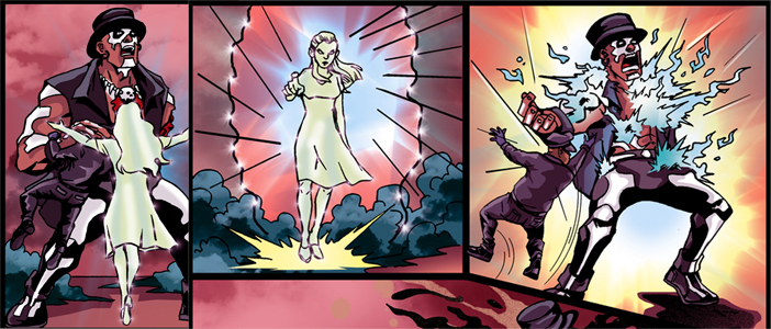![]() Created by: Lawrenz Lano First appearance: The Unconventionals #4 © 2013 Gaia Force by Lawrenz Lano | Real Name: Rachel Kline Hair: Blonde Eyes: Blue Height: 5 foot 6 inches Age: 16 Country of Origin: Canada Base of operations: Montreal, Canada Classification: Randomite Ethical alliance: Good History When she was twelve, Rachel drowned in the family pool. It had been a stupid accident. She had been playing with her dog, when the Randomite seizure took her. She slipped and fell in the pool. As she did, she banged her head and lost consciousness. The seizure continued as her soul started to slip out, but somehow, it managed to keep its anchor. She was rescued by her mother, but the teen never woke up and for the past four years, she has been in a coma. The doctors had wanted to remove life support when Rachel was diagnosed as being brain-dead, but moments before "pulling the plug", activity in the brain resumed. The doctors were baffled and refrained from ending her life, but when, days later, the child's brain functions stopped once more, they decided to go ahead with their first intention and proceeded to disconnect life support. The apparatus was turned off, but it immediately turned back on, and when a nurse tried to reset the switch, she was violently pushed out of the way by an unknown force. The doctors raced out of the room as objects started moving and flying around. When things settled down, It was agreed that the child would remain on life support, but the entire hospital, shunned that room, believing the comatose child to be possessed. In reality, things were somewhat different. Rachel was the one causing the disturbances. She was very much alive, but she was also a ghost. Her soul had refused to move on, and it was still bound to her body. Rachel had been frightened when she had become aware of her fate, but over the years, she had learned to accept her situation. At first, she had wanted to leave her body behind and move out into the world, but she soon realized that she was still bound to it. Whenever someone touched or moved her, her soul returned to it. She also learned that she could affect her surroundings, even if she was intangible. She had some form of telekinesis that enabled her to move things with her mind, and she could physically pick up items by concentrating hard enough. The most interesting aspect of her new form, was that she could tap into the energy of her soul and release it. Soul energy is lethal to nether forces, but it can also harm living beings, depending on how tainted their souls are. With little to do with her time, Rachel started wandering the city streets at night. There she encountered many evils (usually in the form of men) and she used her ghostly abilities to thwart their evil intents. But not all the evils she encountered were men, many were nether in nature. The cruellest of these was a monster calling himself Mardi Gras. Half alive, half dead, Mardi Gras was born of flesh but sustained by voodoo magic. She fought him many times and thought she had killed him more than once, but Mardi Gras always managed to return. He was the only being to date who actually knew what Rachel was, and he had accurately named her a Soul Walker. Mardi Gras would rise again, and it was one such time that she stumbled onto a team of people who had also been fighting him. The youths were holding their own, but Rachel knew that Mardi Gras was too powerful a foe, so she joined them in dispatching the threat. The young heroes were startled as objects started to fly and attack their opponent, and even more so when Rachel unleashed her soul energy to terminate the threat. It was during that instant that one of them managed to glimpse the ghostly form that was Rachel. The leader of the group, a lad going by the name Ricochet, was somehow able to communicate with her. He claimed that he had a neurological disorder that allowed him to communicate with certain people. One was an autistic colleague named Zack, and now, Rachel. Rachel was glad to have someone to talk to after all these years, and when Ricochet asked her to become a part of their team, Rachel agreed. But at first, some obstacles needed to be navigated. No one but Ricochet could actually talk to her, much less see her. But thankfully, Zack came to the rescue when he created a device capable of detecting her. Named the Para-Sensor, the device is hundreds of times more powerful and accurate than ghost detecting equipment. It scans for changes in the static field and ambient temperature, as well as variations in the electromagnetic field. It, then, converts the data into a 3D image with sound. The Para-Sensor is connected to the temple of the observer, enabling them to see Rachel and even converse with her. Rachel would not be alone anymore. Under the name Soul Walker, she became part of the young team of heroes called the Unconventionals. Powers Telekinesis: Soul Walker has the ability to move objects by focussing her mind on her actions. Even if she is intangible, she can pick up objects and throw them. ![]() Energy blast: Soul Walker can direct blasts of soul energy. This energy is lethal to otherworldly creatures, but also effective against living beings with tainted souls. ![]() Intangibility: As she is in spirit form, she cannot be touched physically. Power lift: Her body may be in a catatonic state, but Rachel can use her telekinesis to lift objects as heavy as 300 lbs. Floating: Her spirit can rise and float, and she can travel at moderate speed. Symbiosis: Soul walker is tied to her living body. Without it, she would likely not survive and would move on. Weaknesses: If her body is disturbed, Rachel's soul returns to it. She is also susceptible to some dark magic. Releasing her soul's energy is taxing, and she only does so as a last resort. Curiosities: Unlike real ghosts, Rachel is not cold to the touch. Her ghostly form generates heat, presumably due to the fact that it is still joined to her bod