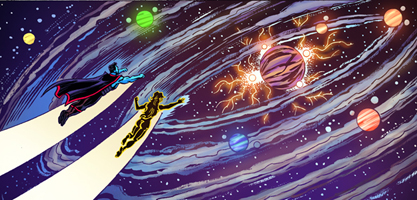 Abyss System The Abyss system was created by the Guardian as a home for Avatar Prime. It is located 500 light years outside the galactic disk. It consists of a small brown dwarf star with a single planet. The system has no moons or asteroids within. Type of system: Brown Dwarf system Number planets: 1 First appearance: Novel Grey Legacy First visual appearance: Scheduled for Gaia Force #12 Aman'dal System The fourth world of that system is called Aman' terot. It is a world where interstellar commerce thrives. It is also the world where the headquarters of the Gamblers' Guild is located. The most famous city on Aman'terot is Betna'tu City, where the Pan Stellar Tournaments are fought. Type of system: Solar analog (similar to Sol) Number of planets: 8 Number of inhabited planets: 1 Home of: E'lah, Chaeh'lah and many other species. Location: E'lah Dominion First appearance: The Return of Gaia Force #3 Ayama System  The Ayama system was part of the BahNu Consortium until it was liberated by the Guardian. It has since been protected by the Children of the Guardian. Type of system: F-type star system Distance from Earth: 800 ly Number of planets: 6 Number of inhabited planets: 1 (Neosa) First appearance: Novel Grey Legacy First visual appearance: The Return of Gaia Force #1 Cordax System The Cordax system is located in Anunnaki space, but hasn't officially been claimed due to the unremarkable nature of the worlds that comprise it. The only signs of life that can be found are mostly microscopic, although some lichen and primitive plant life can be found on one of its moons. Type of system: Red dwarf system Number of planets: 10 Number of inhabited planets: 0 Number of habitable worlds: 1 moon with primitive plant life Location: Anannuki Sancta First appearance: Scheduled for Gaia Force #11 Di'Konsha System The Di'Konsha system is one of the commerce hubs in the E'lah trade route. Wares shipped from all over the Dominion get sent to these hubs, whereby the products get distributed to their final destination. The trade routes are heavily patrolled due to the high number of raider and pirate activity. Type of system: Yellow dwarf system Number of planets: 6 Number of inhabited planets: 0 Number of habitable worlds: 1 moon has been set up as the system's main distribution centre. Malekia City can also be found in the outer belt of the system. Location: E'lah Dominion First appearance: The Return of Gaia Force #5 Eta Carinae System  The system is located within the Carina Nebula. The combination of regular stellar eruptions as well as the combined gravity of the two stars which comprise it causes great turmoil inside the nebula. Comets and asteroids are always changing course and collisions are a frequent occurrence. Type of system: Binary star system (Both blue type) Distance from Earth: 7500 ly Number of inhabited planets: 1 (Exilium) Location: Eta Carinae Nebula First appearance: The Return of Gaia Force #4 Kavini System  The Kavini system is moving out of the galaxy. A long time ago, the star passed too close to a black hole and was ejected towards the outer arm of the galaxy. The Athelans were the inhabitants of the system and they had flourished for millions of years. They had moved from one planet to the other, using up all the resources they had to offer, and eventually settled on the furthestmost world of their system. To do so, they had transformed one of their system's inner planets into a new star, allowing its heat and light to reach this distant world. The planet they had chosen, however, had been a sentient world and the transformation was killing it. When the Guardian learned of it, he destroyed the Athelan technology that had created the star, turning it back into a regular planet. With no star to sustain the Athelans' furthermost world, it quickly turned to a frozen wasteland. The system is no longer capable of sustaining any life. Type of system: A-type main-sequence star Number of inhabited planets: None. The Athelans are presently trying to survive aboard their few remaining ships. Home of: Athelans First appearance: A Tale of...#1 Pal'lasha System Long ago, the red giant Pal'lasha ejected its material and became a white dwarf. As it exploded, it took with it most of the planets orbiting it, except for two of them, the furthest from their star. The one that is now known as Pal'lasha 1 had its orbit changed by the newly formed white dwarf star that remained, and was pulled closer to it. It also absorbed a high amount of rare elements from its star's explosion and the ice that had once covered it, started to melt. Over time, it surprisingly developed an extensive flora and fauna. Today, it resembles Earth during the Jurassic period. It is an extremely hostile world. Because of its high deposits of rare elements and minerals, Pal'lasha 1 has been settled by an E'lah mining and refining facility. Their most precious ore is mined from the planet's core and is instrumental in the manufacturing of warp drive engines. Pal'lasha 2 is a gas giant, but after its star's explosion, it absorbed a great amount of new gases and increased in size. It is now a super-sized gas giant, also known as a Super Jupiter, and has over 200 moons. Type of system: White Dwarf system Distance from Earth: 153 ly Number of planets: 2 Number of inhabited planets: 1 Worlds from that system: Pal'lasha 1 (a.k.a. Pal'lasha) and Pal'lasha 2 Home of: Chaeh'lah Location: E'lah Dominion (Hyades cluster) First appearance: Novel Grey Legacy Rigel System  Some 500 years before the Gatari/Earth war, the Rigel System was colonized by the Gatari. Because of its star's massiveness, the Goldielock zone it generates is quite vast. So vast, in fact, that 12 of the planets can be found in it. The Gatari managed to set colonies on those twelve worlds, as well as many of their moons. The Rigel system also harbours one of the rarest substances in the galaxy, jakka. Jakka is an organic substance created by an insectoid species, which 